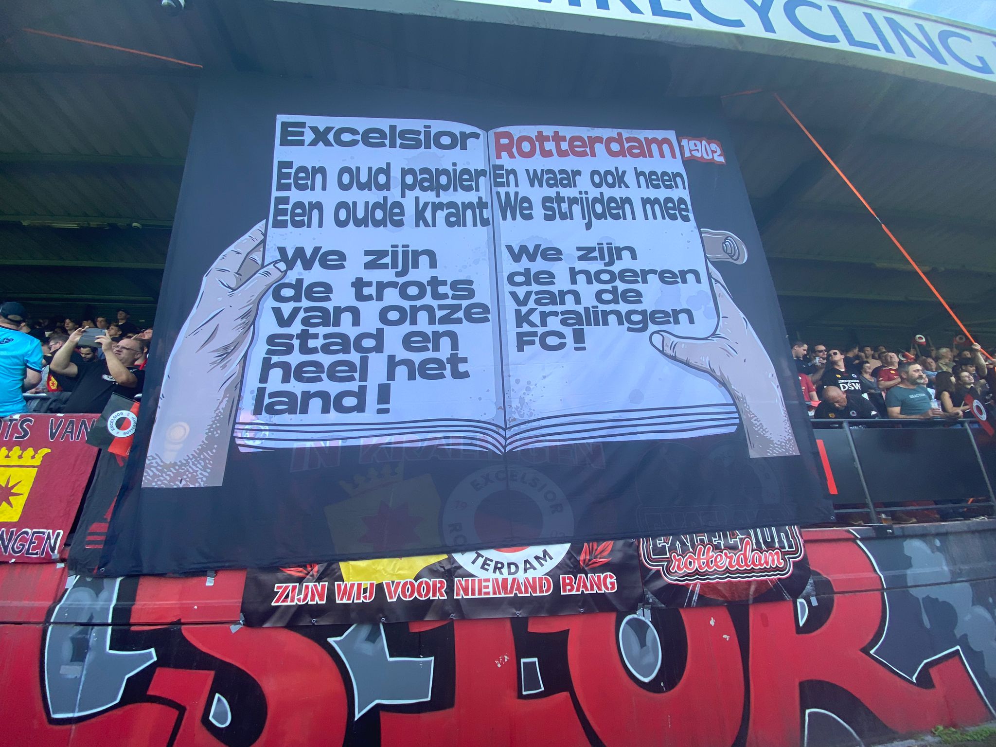 Sinds de sfeercommissie sinds vorige maand weer actief is, zijn we samen met onze leden weer druk bezig met het organiseren van nieuwe sfeeracties. Een van de resultaten was het megadoek dat tegen Sparta voor de RVP-tribune werd gehesen. Dit soort acties zijn onmogelijk zonder het sfeerteam, dat ons helpt met het daadwerkelijk uitvoeren van de sfeeracties!