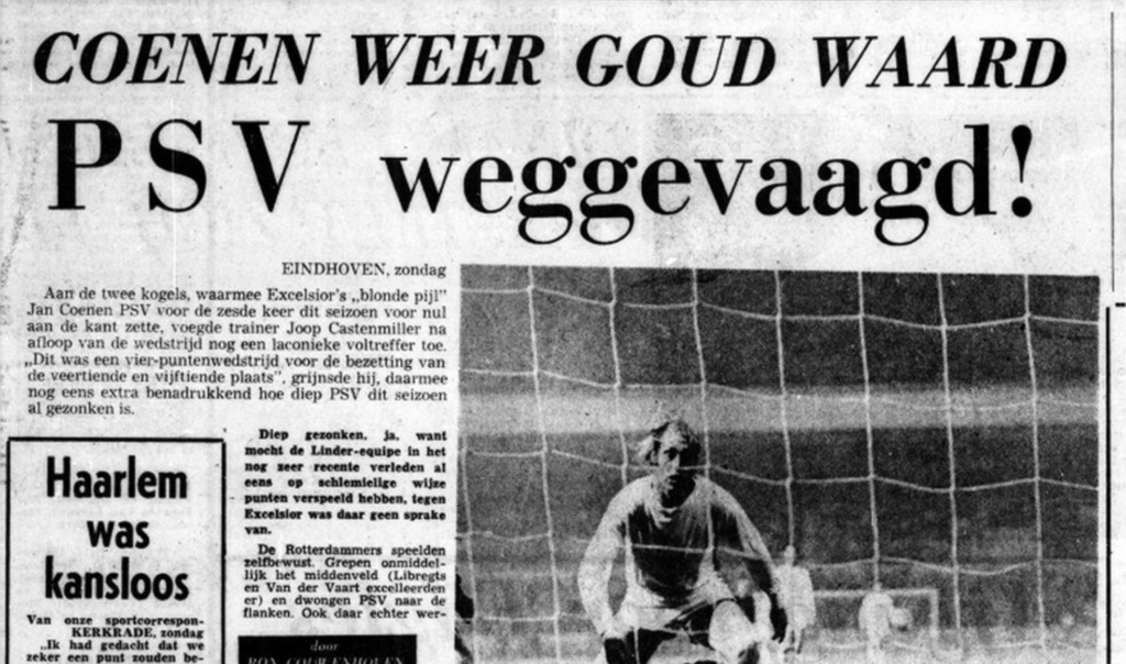 ‘PSV weggevaagd!’ kopte De Telegraaf een dag na de Eredivisiewedstrijd tussen PSV en Excelsior op 31 oktober 1971. De Eindhovenaren verkeerden in een vormcrisis en Excelsior-trainer Joop Castenmiller spoorde zijn Kralingse ploeg daarom aan om brutaal en aanvallend te spelen in het Philips Stadion.