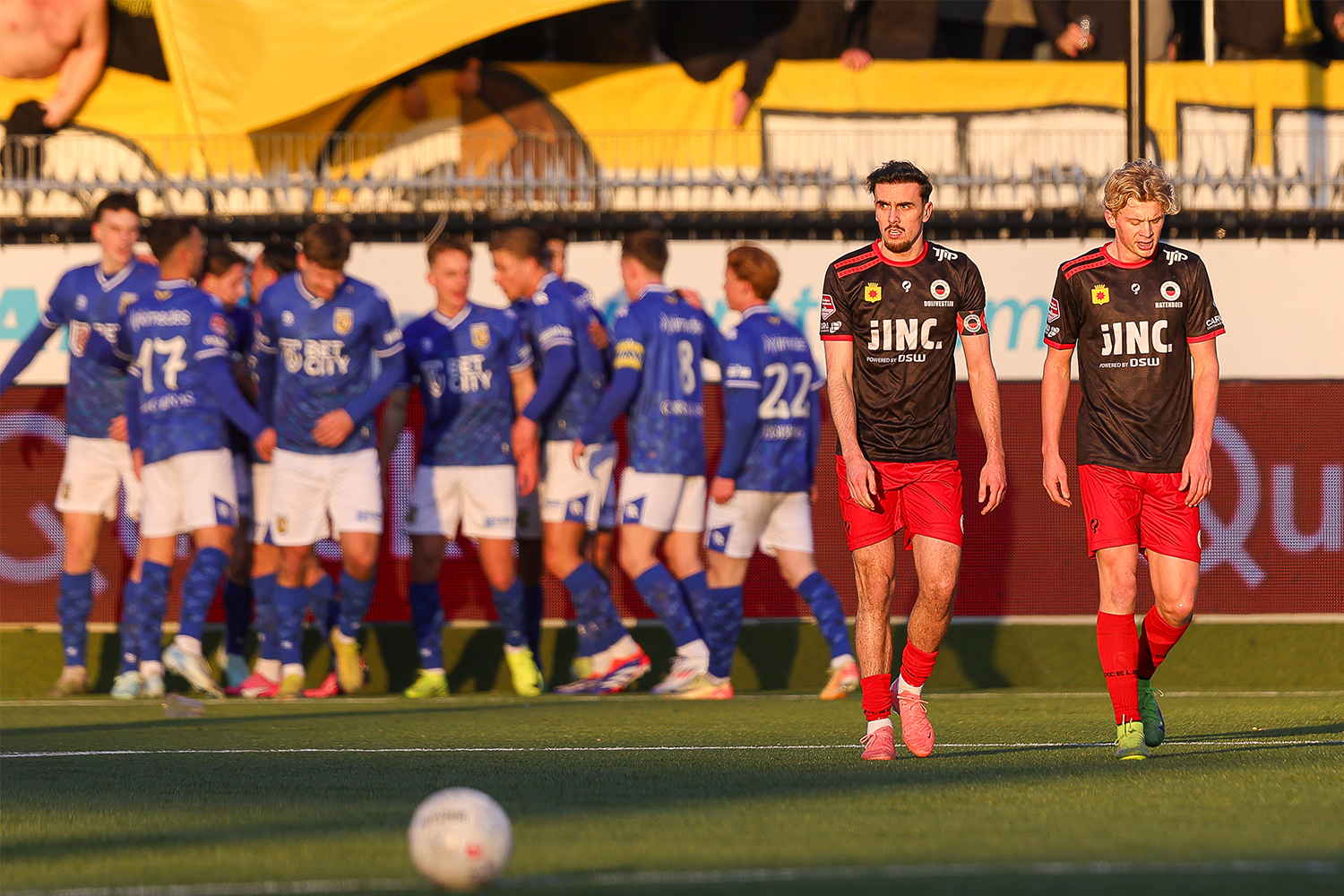 Na ruim een kwartier stond het al 0-2 en was het duidelijk dat een resultaat er niet in zou zitten. Ruben den Uil wisselde na rust volop, maar niets bleek de oplossing. Halverwege de tweede helft werd Raatsie voor de tweede keer eenvoudig omspeeld en was de wanvertoning compleet. De volle tribunes aanschouwden een collectief falen: geen enkele speler scoorde een voldoende. Dat Lance Duijvestijn in blessuretijd nog scoorde, was niet eens een doekje tegen het bloeden.