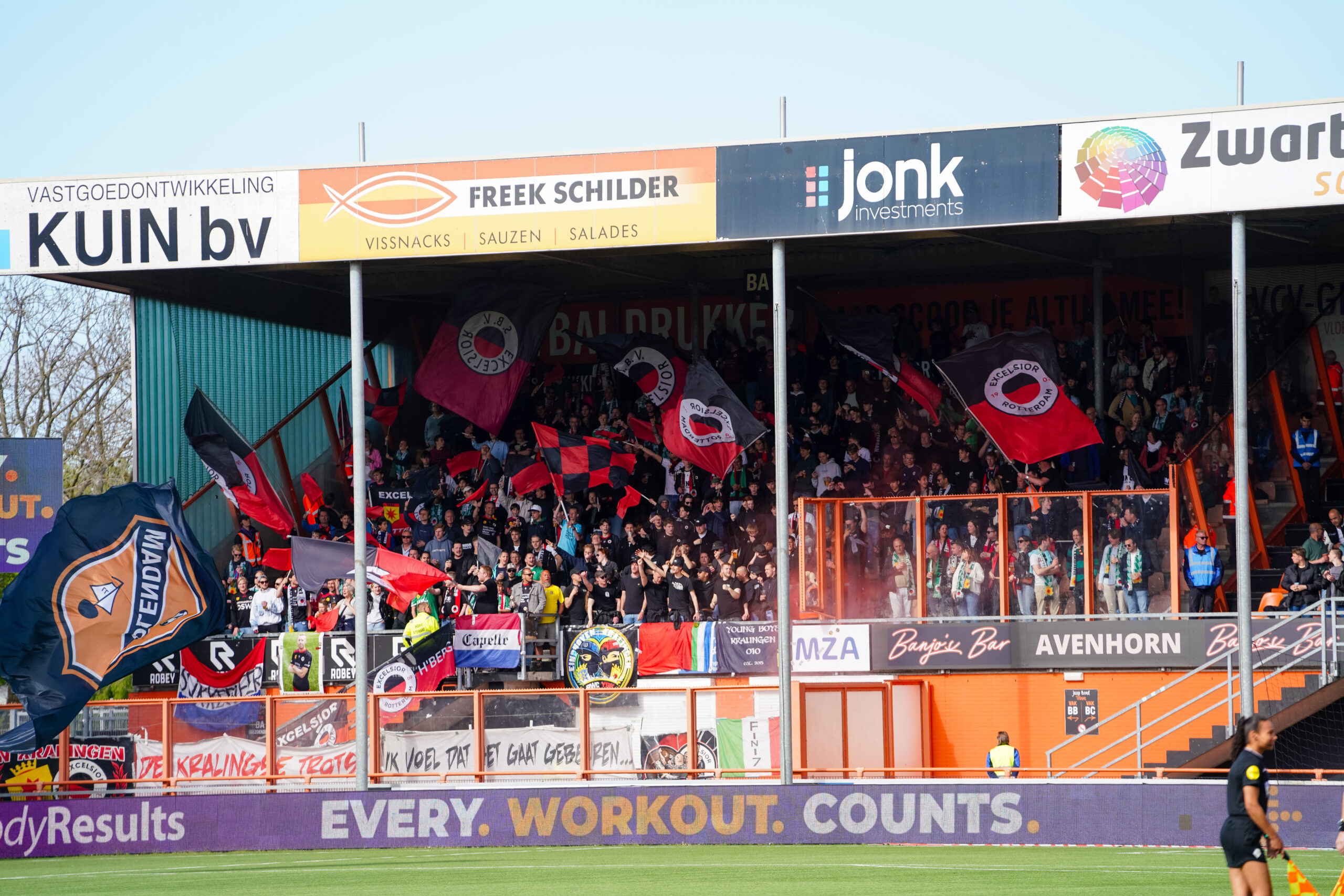 Het maakte het feest van de bijna 400 uitsupporters er niet minder om. Zij stapten met een grote glimlach in de met eieren bekogelde bus, maar beseften ook goed dat Excelsior er nog allesbehalve is. De strijd om plek twee lijkt na dit weekend enkel nog tussen Excelsior en ADO te gaan. De Kralingers spelen nog tegen FC Emmen, Jong PSV (beide thuis) en Jong AZ (uit), terwijl voor ADO duels tegen Roda JC (uit), SC Cambuur (thuis) en VVV (uit) wachten.