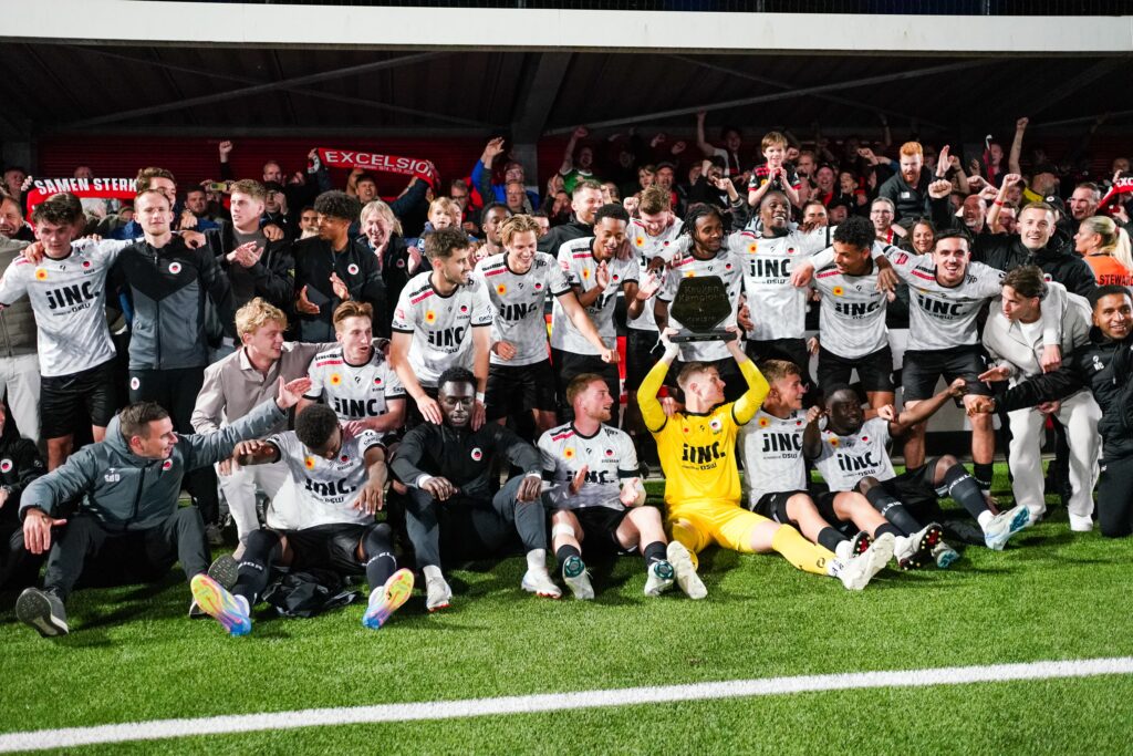 Maar wat deert het? De promotie was al binnen en ook de periodetitel en de daarbij behorende 75.000 euro was de hele wedstrijd een zekerheid. Na afloop was er voor het uitvak een mooi samenzijn tussen spelers, staf en de fans. Ruben den Uil bedankte de supporters dat zij Excelsior dit seizoen massaal achterna zijn gereisd en naast de trainer werden in het bijzonder de vertrekkende Mario Meijer, Adrie Koster en Cedric Hatenboer luidkeels toegezongen.