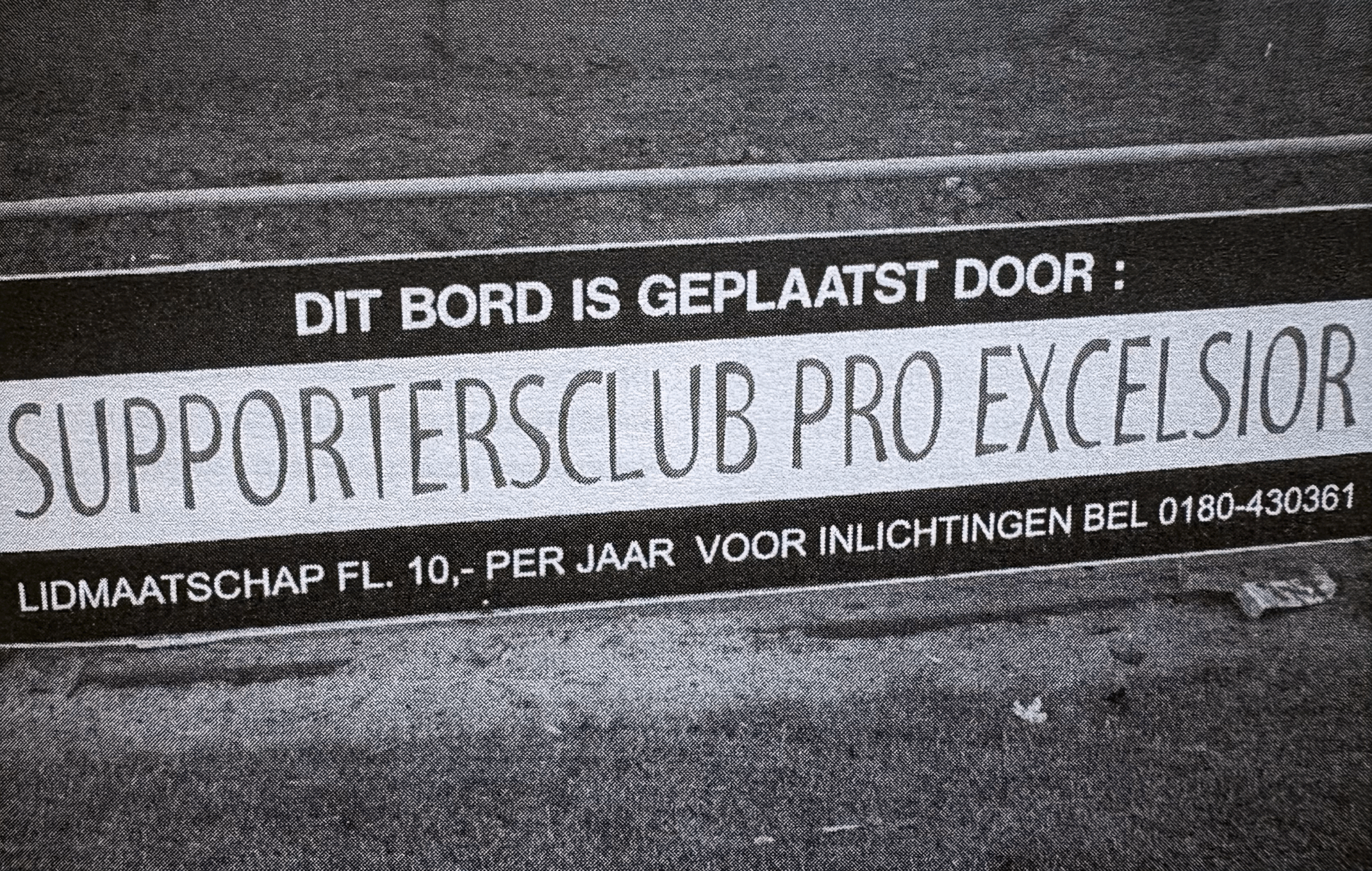 Reclamebord van Pro Excelsior bij de jeugd- en amateurafdeling van de club.